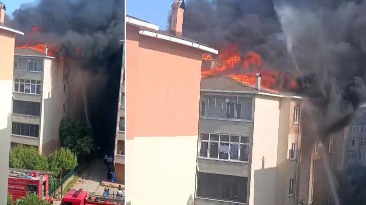 Silivri’de 5 katlı binanın çatısında yangın! Takımlar sevk edildi