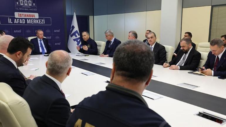 Hasdal’daki İstanbul Vilayet Afet ve Acil Durum Müdürlüğünde bulunan kriz merkezini ziyaret eden Erdoğan’a, ilgili bakanlar ve yetkililer tarafından kapsamlı brifing verildi.
