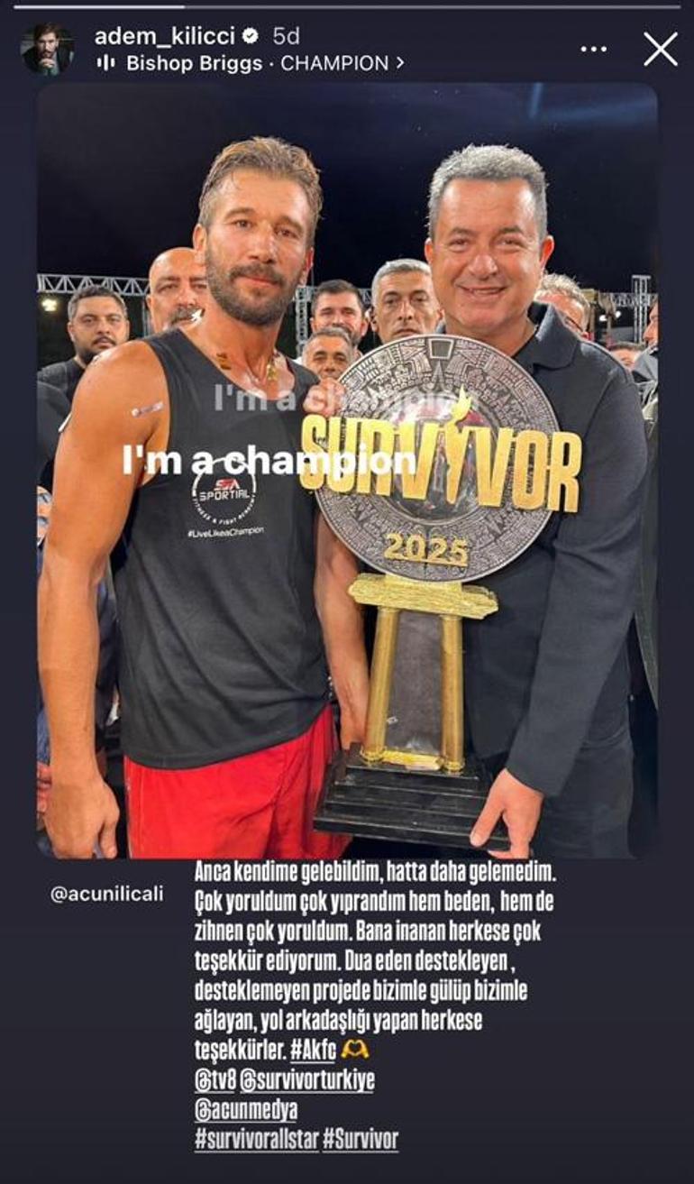 Survivor 2025 şampiyonu olan Adem Kılıççı’dan birinci paylaşım! ‘Çok yoruldum, çok yıprandım…’