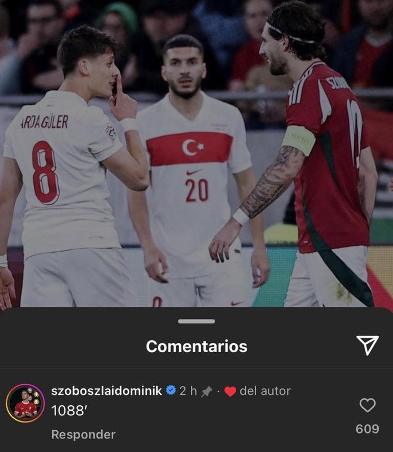Szoboszlai, maçın akabinde Arda Güler’in hareketi ile ilgili toplumsal medyadan yorum yaptı. Bir Macar haber sitesinin Arda Güler’in sus işareti yaptığı fotoğrafın paylaşımına ‘1088’ yorumunu yaptı.
