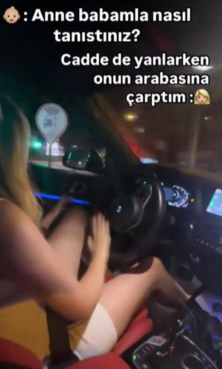 Kadıköy Bağdat Caddesi’nde gece saatlerinde arabası ile drift atarak manzaralarını “Anne babamla nasıl tanıştınız ?. Caddede yanlarken onun aracına çarptım” kelamlarını yazarak toplumsal medya hesabında paylaştı.