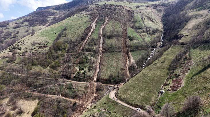 Sisin dağılmasının akabinde AFAD grupları, yaklaşık 100 dönümlük alanın etkilendiği bölgede incelemelerde bulundu. Heyelanın boyutu dron kamerasıyla görüntülendi. Manzaralarda; derin yarıkların oluştuğu alanda tonlarca toprağın aşağıya kaydığı görüldü. Grupların saha incelemelerinde heyelan riskinin sürdüğü tespit edilip, güvenlik şeridi çekilen yol bir müddetliğine ulaşıma kapatıldı.