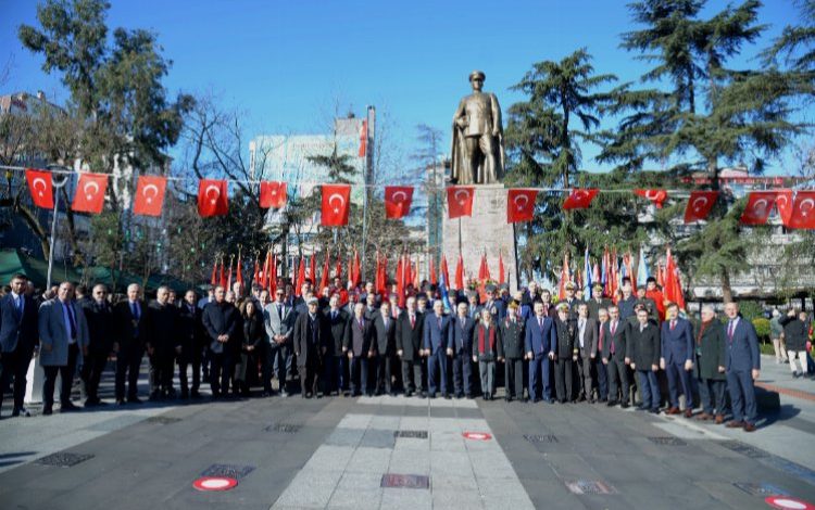 Trabzon Valisi Aziz Yıldırım ve Trabzon Büyükşehir Belediye Başkanı Murat Zorluoğlu Atatürk Anıtı’na çelenk bıraktı. Saygı duruşunda bulunulması ve İstiklal Marşı’nın okunmasının ardından tören Hamamizade İhsan Bey Kültür Merkezi’nde devam etti.
