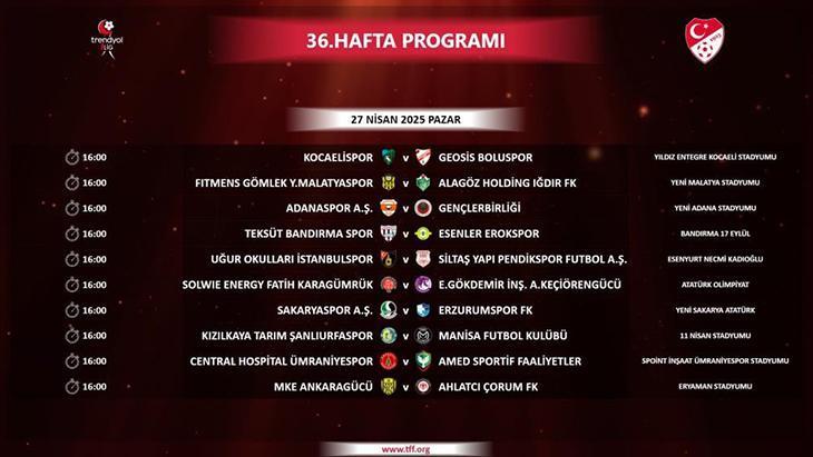 Trendyol 1. Lig’de 36. haftanın programı şöyle: