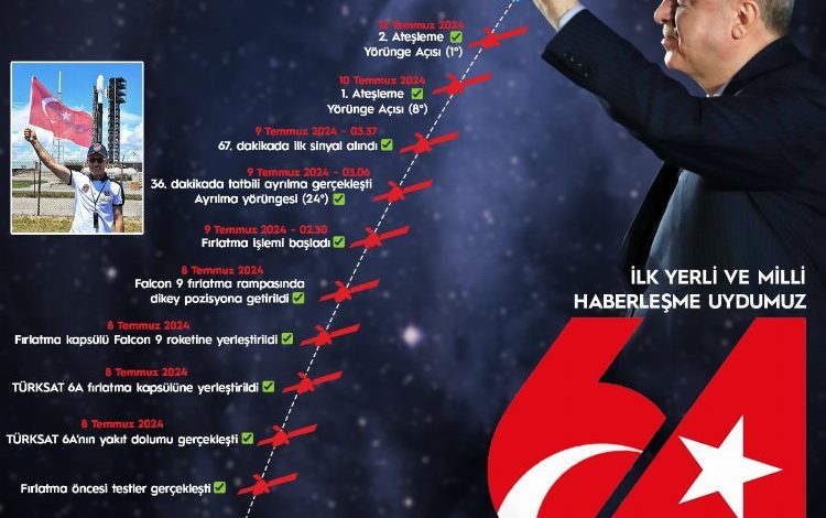 Bakan Uraloğlu, uydunun, ABD’nin Florida eyaletinde bulunan SpaceX’e ait Cape Canaveral’daki fırlatma merkezinden Falcon 9 roketi ile 9 Temmuz saat 02.30’da uzaya gönderildiğini hatırlatarak, “Türkiye’nin yerli ve milli haberleşme uydusu Türksat 6A, fırlatılmasından sonra 35. dakikada roketten ayrıldı. Uydudan ilk sinyal fırlatılışından 67 dakika sonra alındı. Fırlatıldıktan yaklaşık üç saat sonra ise saat 05.25’te uydumuz güneş panellerini açtı. Şu an itibariyle uydunun bütün fonksiyonları normal ve süreç planlandığı gibi başarıyla ilerliyor” dedi.