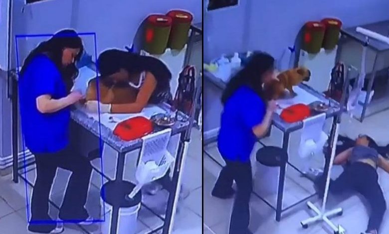 Veteriner kliniğinde şok anlar! Köpeğini tedavi ettiren bayan yere yığıldı
