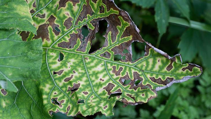 Yapraklarda koyu, hatta siyah lekeler varsa bu en tehlikelisidir. Bu durum, mantar hastalıklarına yol açan çok ve ağır ilaçlamanın göstergesi olabilir. Bu lekelerin büyüyüp öbür yapraklara yayılabileceğini unutmamanız gerekir.