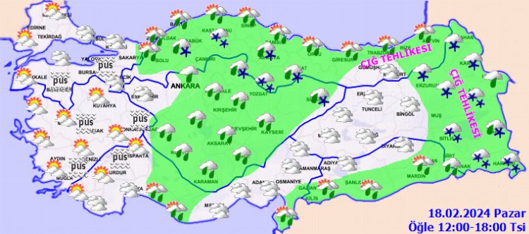 ÇIĞ TEHLİKESİ UYARISI: Doğu Karadeniz’in iç kesimleri ile Doğu Anadolu’nun kuzey ve doğusunun kar örtüsüne sahip eğimli yamaçlarında çığ riski bulunduğundan dikkatli ve tedbirli olunmalıdır.
