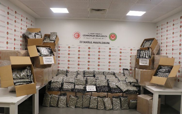 Erdoğan DEMİR / İSTANBUL (İGFA) – Ticaret Bakanlığına bağlı İstanbul Havalimanı Gümrük Muhafaza Kaçakçılık ve İstihbarat Müdürlüğü NARKOKİM birimlerince gerçekleştirilen risk analizi çalışmaları kapsamında, yurt dışından gelen ve transit olarak bir Avrupa ülkesine gönderilmek istenilen hava kargo gönderisi şüpheli bulunarak incelemeye alındı. Yapılan detaylı arama sonucunda, narkotik dedektör köpekler de kolilere tepki vermesi üzerine ekiplerimizce açılan kolilerin içerisinde 432 kilogram esrar cinsi uyuşturucu madde ele geçirildi. Piyasa değeri yaklaşık 140 milyon TL olarak tahmin edilen uyuşturucu madde yakalamasıyla ilgili soruşturma Gaziosmanpaşa Cumhuriyet Başsavcılığı nezdinde yürütülmektedir.
